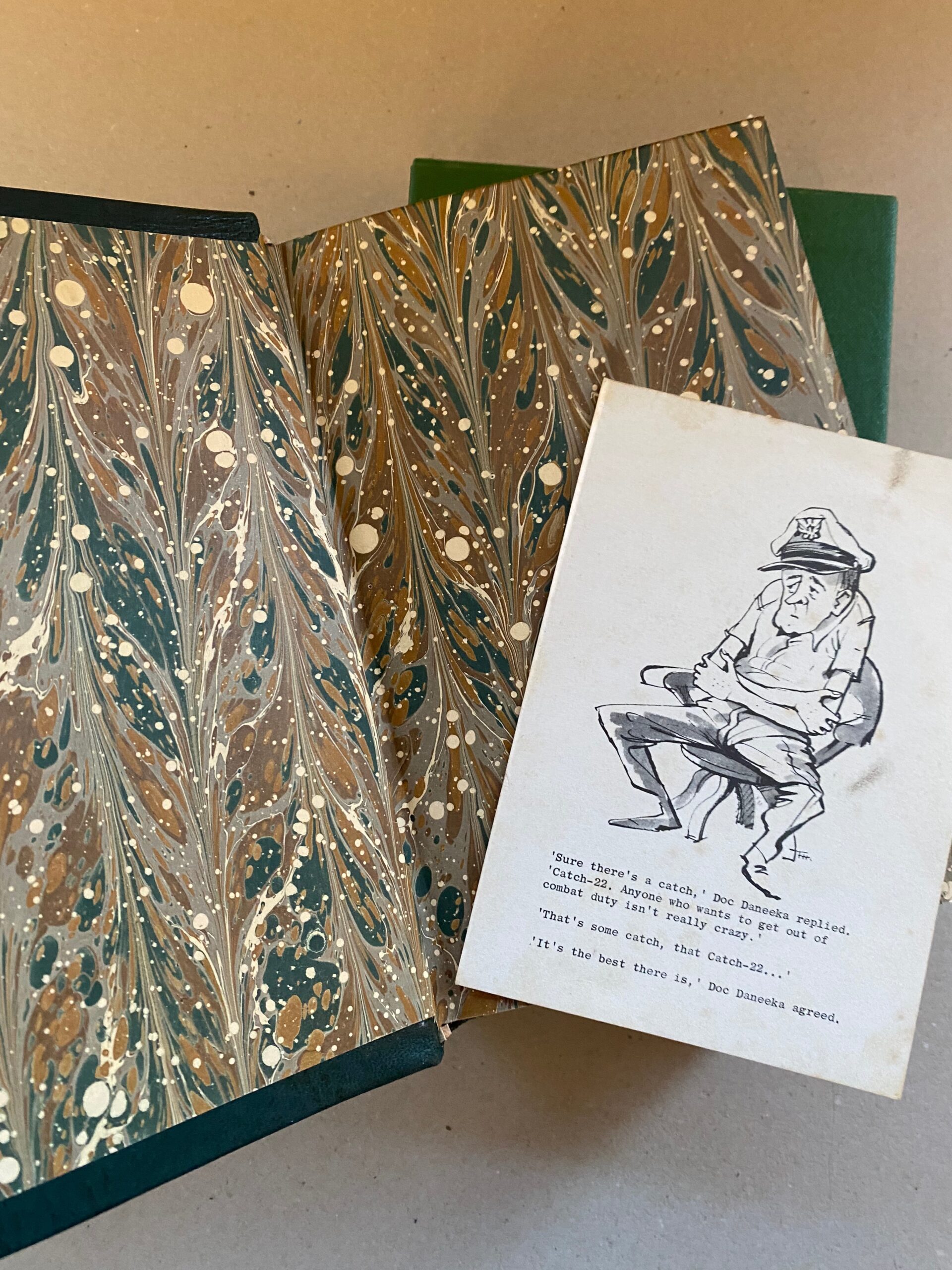- Hand marbled endpapers