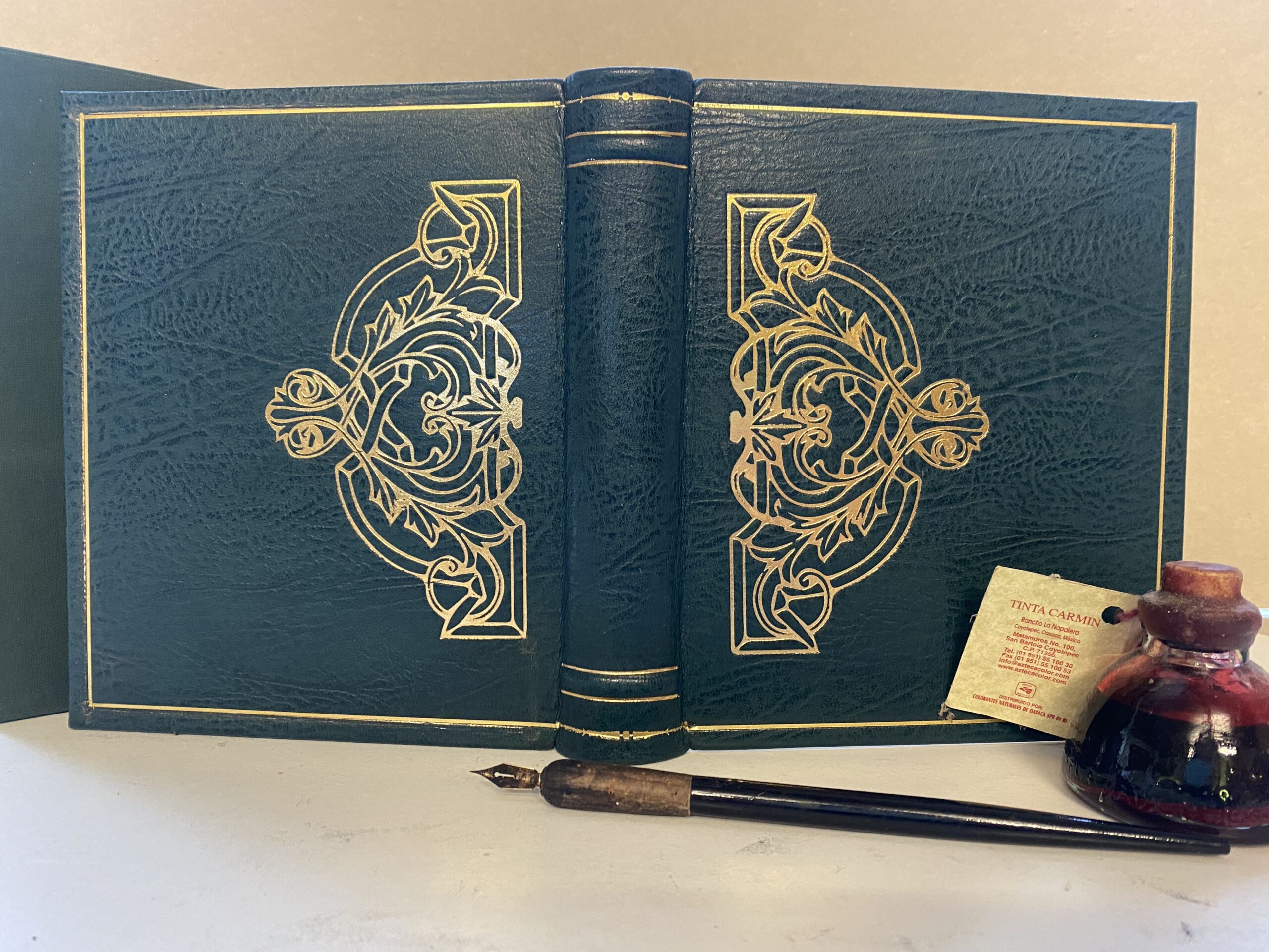 - Bound in a quality forest green leather